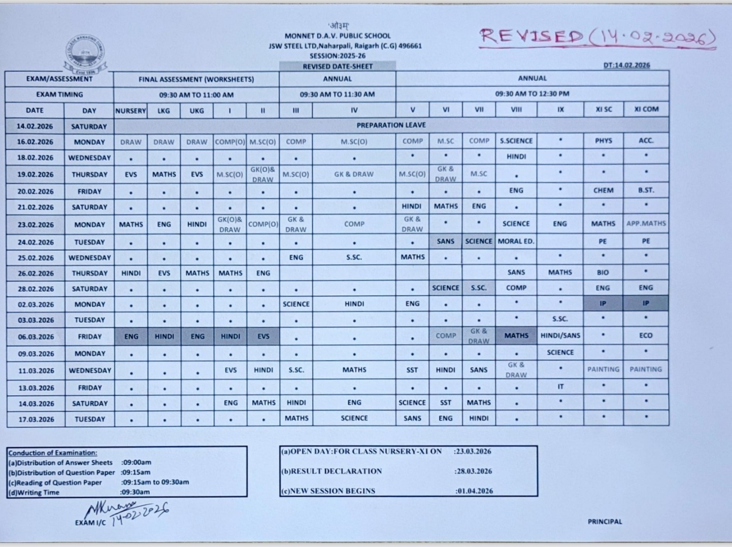 Final Assessment/ Annual Exam 2025-26 (Nursery to IX & XI)